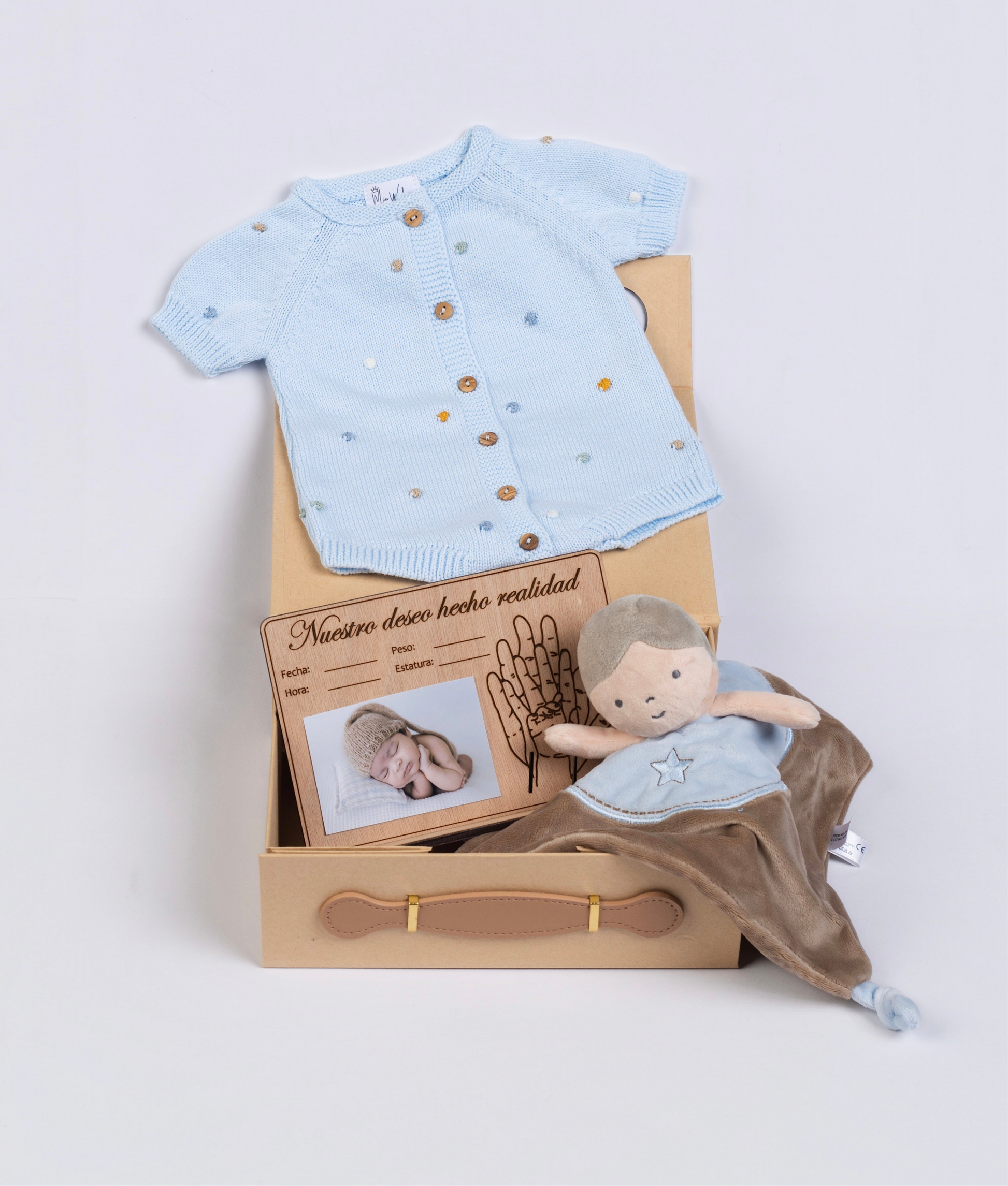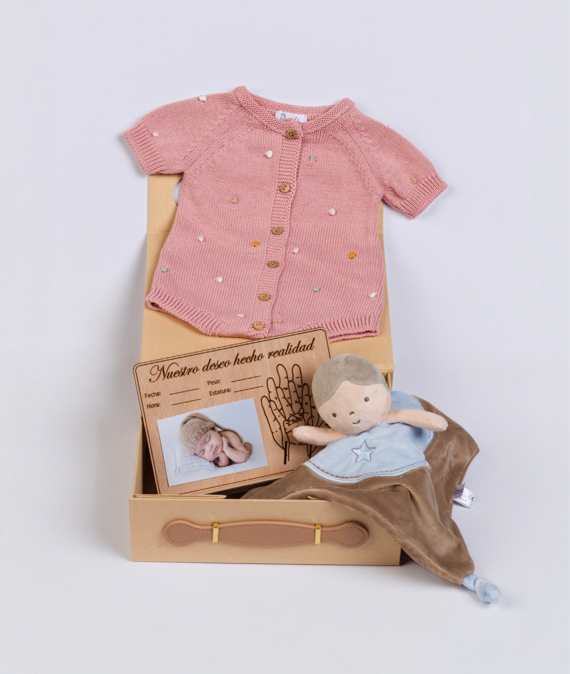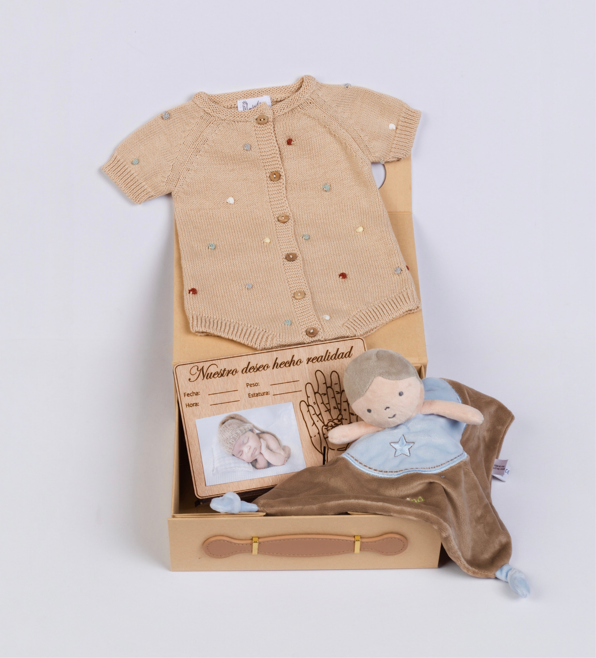 - 🎁 Presentación en caja tipo maletín: lista para regalar en baby shower, nacimiento o bautizo.