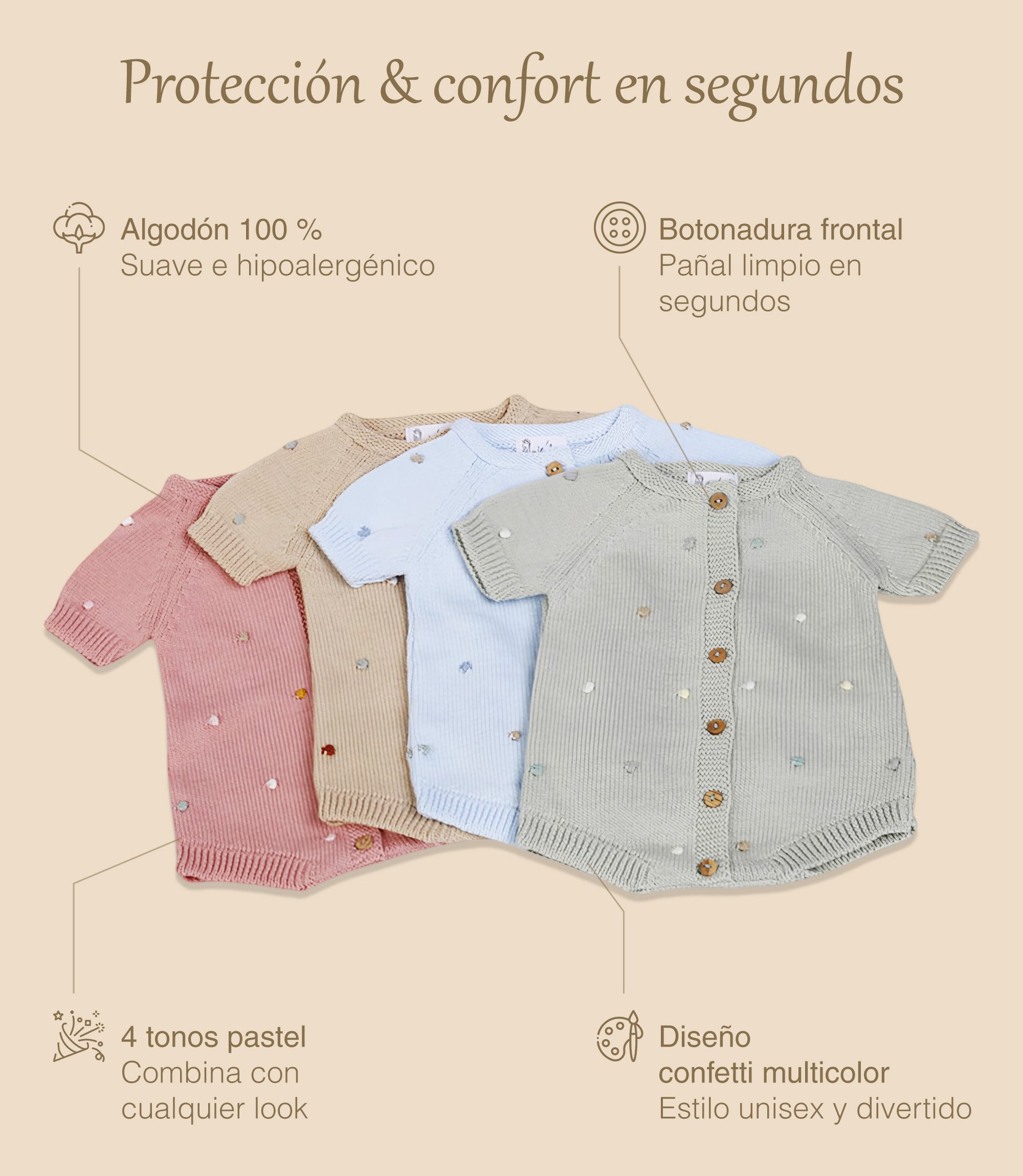 - ✨ Diseño elegante y práctico: prenda de punto con botones frontales para vestir fácilmente al recién nacido.