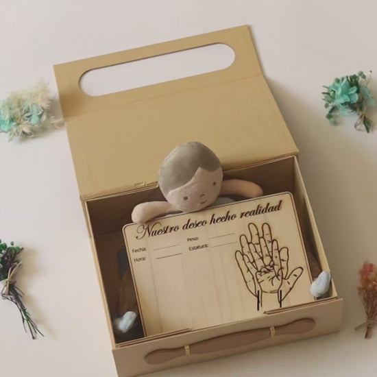 Dale la bienvenida al nuevo integrante de la familia con este tierno set de regalo para recién nacido. Presentado en una elegante caja tipo maletín, incluye todo lo necesario para un detalle especial y lleno de cariño.